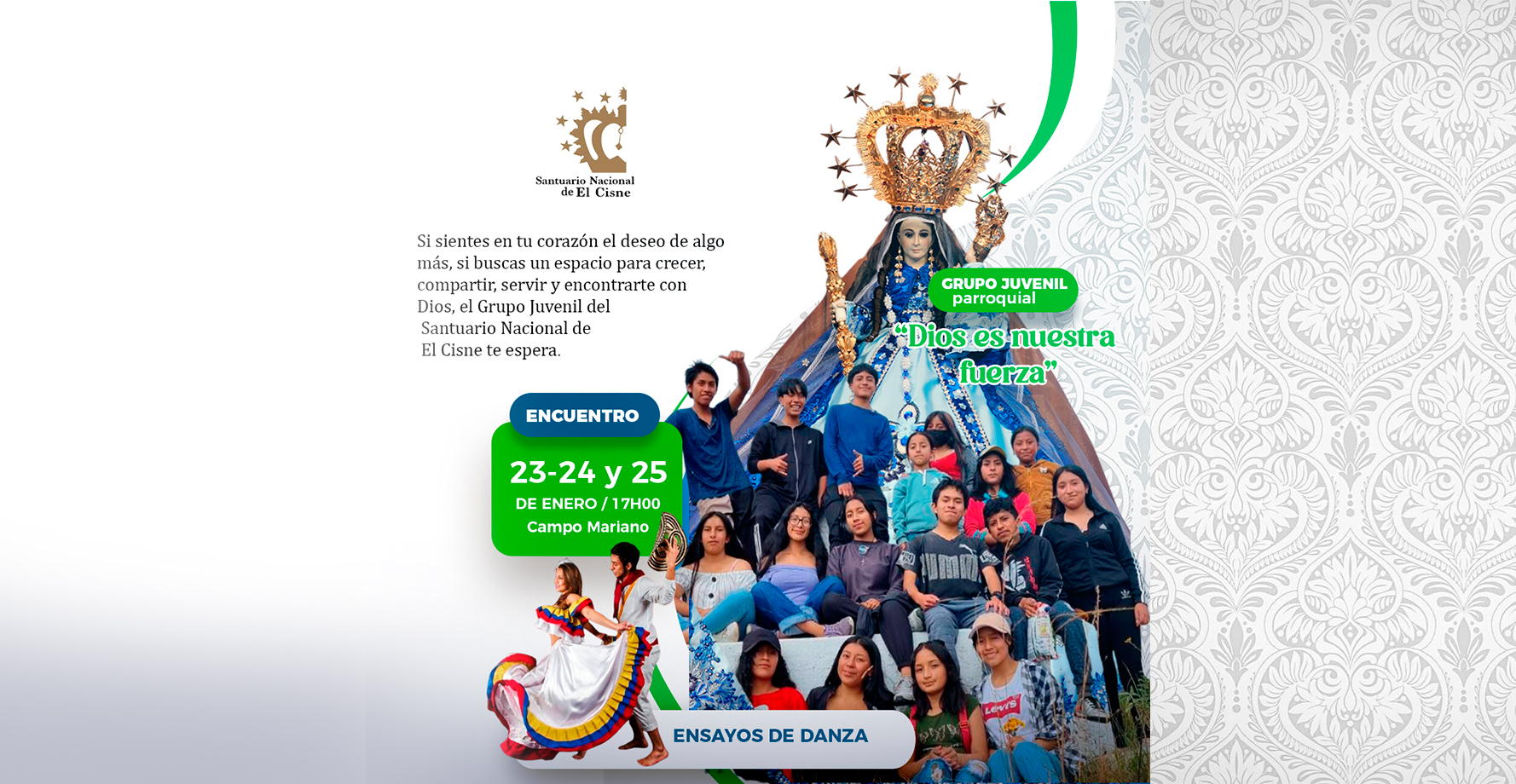 enero 22, 2026 Se parte del Grupo Juvenil «Dios es nuestra fuerza» La parroquia El Cisne te invita cordialmente a ser parte del grupo juvenil “Dios es Nuestra Fuerza”, un