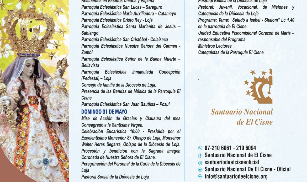 Como peregrinos acudimos porque creemos que, por intercesión Reina y Madre de El Cisne, nos trae la gracia de Cristo para santificar, consolar y alegrarnos como a tus hijos. María lleva a Jesús en su vientre. Cuando entra en casa de Zacarías, no solo va la mujer, sino el Salvador del mundo. Santa Isabel lo reconoce y exclama: “¿De dónde a mí tanto bien, que venga la Madre de mi Señor a visitarme?”. Cuando Isabel escucha el saludo de María, “el niño saltó de gozo en su seno”, y ella es llena del Espíritu Santo. La presencia de María trae una efusión de gracia y alegría mesiánica. Que busquemos esa misma alegría espiritual, la consolación y la gracia del Espíritu Santo. Que el santuario se convierta en un lugar de bendición y un “oasis” de encuentro con Dios a través de María.